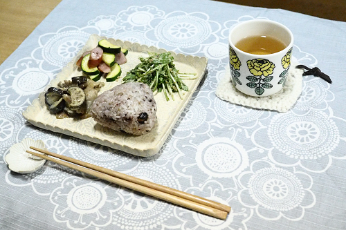 おにぎりは十六黒米に、具はライトフレークのかつおに